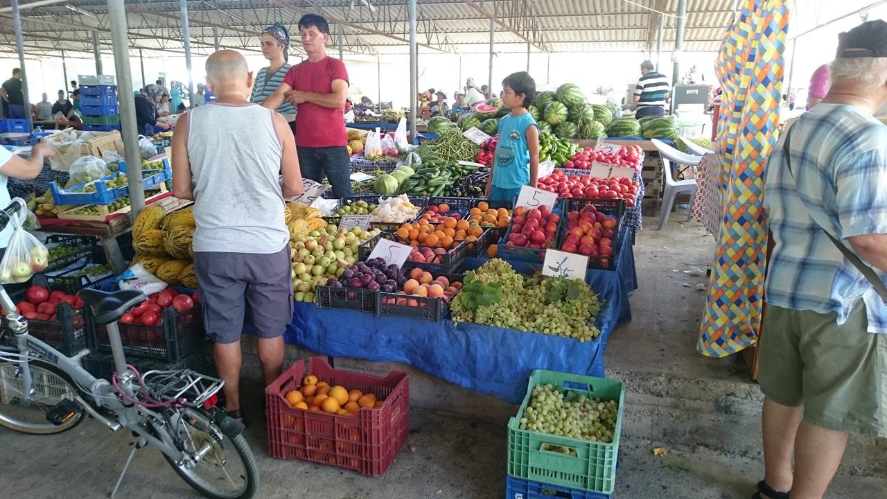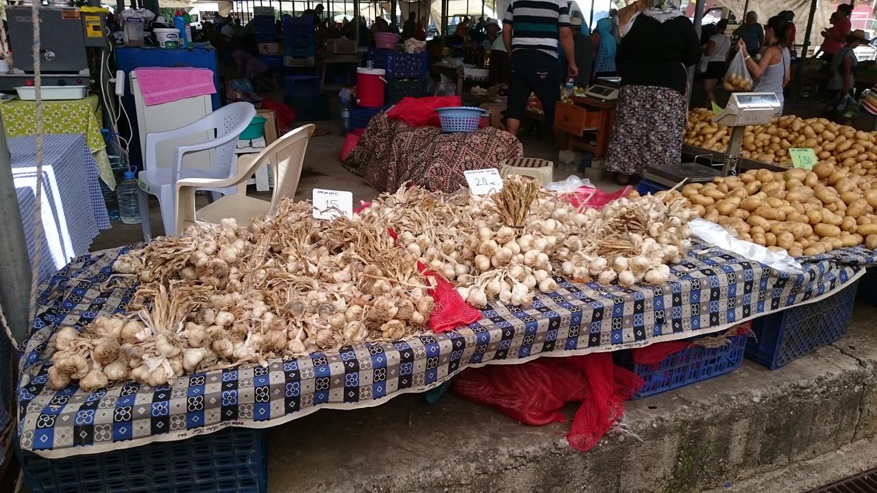 Som tur var fann vi en traditionell söndagsmarknad här i Göcek, förutom massa kläder etc., så hade det mängder med härliga grönsaker och frukter till mycket bra priser.