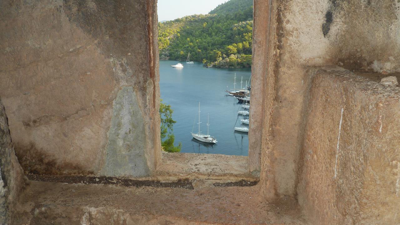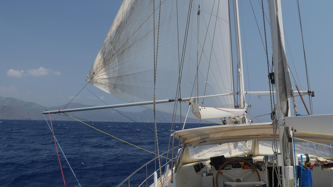 Nu har vi varit i Turkiet en dryg vecka och dessutom hunnit till vårt första ”viktiga” delmål Göcek. Vår första hamn i Turkiet blev Bodrum, ett riktigt turist center med en mycket stor marina som var fullbokad så vi fick ankra utanför på drygt 20 meter djup. Inklarering sköttes via agent för att spara tid, men ack vad vi bedrog oss, det var cirkus denna dag med mängder med båtar som löpte in och ut, varav många skulle ha hjälp med klareringen. Vår drog ut på tiden, men vi fördrev tiden bl.a. med att beställa in Världens PLATTASTE Kebab. En Normal kebab hemma kan man definitivt inte stoppa i mun och bita av, antingen biter man små tuggor i kanten, eller hellre äter med en gaffel ur pita brödet. Den vi fick kunde en myra enkelt ta en tugga tvärs över, ja den hade inte varit plattare ens om man kört över den med ångvält, inte var den särskilt billig heller, som väl var, var den god, men man blev definitivt inte mätt. Därefter Starbucks kaffe trots att vi kommit till fjärran östern, eller är det ens mellersta östern vi kommit till så kan vi inte undvika detta västerländska mecka. Vi fick var sin helt perfekt latte som var het och stark som vi kunde njuta länge av i den nedkylda lokalen, för här är det varmt, men återkommer till det senare.