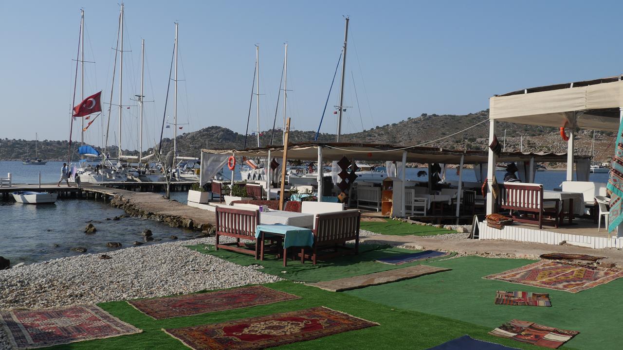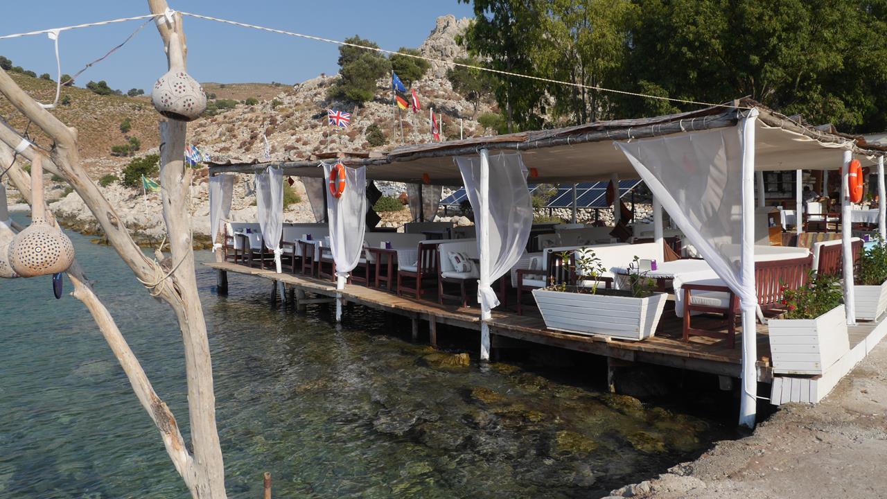 Efter seglingen ovan kom vi till en vik som heter Bozuk Buku (Buku betyder sannolikt vik), det blåste rejält och var tämligen djupt vatten att ankra på drygt 25 m, så vi valde att lägga till vid en brygga som den lokale entreprenören och restaurangägaren lagt ut, det är vanligtvis gratis underförstått att man äter på retaurangen.