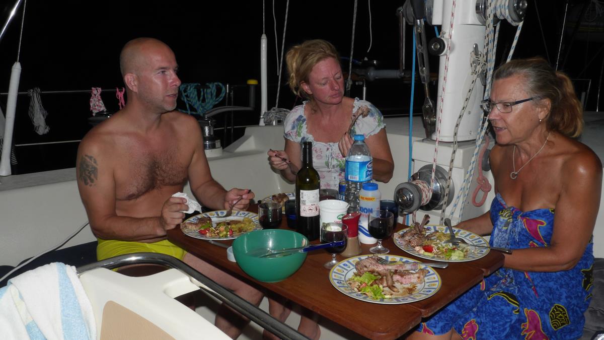 Vi har haft besök av Niklas och Petra som vi lärt känna via Oceanseglarklubben, de skall ut på långsegling om några år och tänkte också skaffa sig en Amel, så för dem var det värdefullt att få prova en Amel under en vecka. Vi har haft varierande vindar och en hel del kryss, normalt så brukar vi starta motorn då eftersom kryssegenskaperna inte är de bästa, men nu blev det kryssa av, och det går ju det också även om vinkeln är tämligen kass, ca 55 grader emot vinden inklusive avdrift, och något sämre givetvis med inrullad Genoa. Vi hoppas att med stagseglet kunna nå åtminstone 50 grader emot vinden, vi får återkomma senare när det är på plats, dessutom så tror vi att vi med de nya seglen med lattor också skall få en förbättring, nuvarande stor står dessvärre inget vidare.
