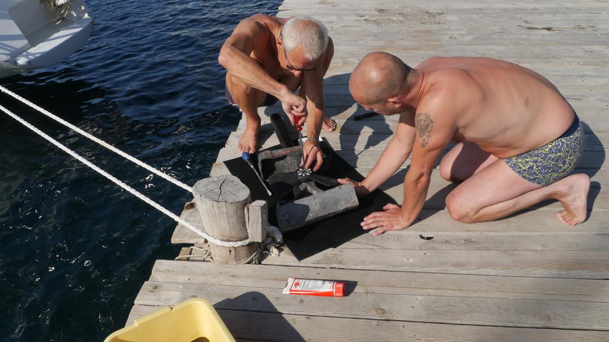 Än så länge så har det känts mer som en lång semester, även om vissa sträckor har varit betydligt längre än vad vi normalt brukar göra. Den ursprungliga tanken var att korsa Atlanten redan denna säsong, men i.o.m att båten kräver en del ny utrustning och dessutom varit obrukad i nästan tre år så tyckte vi att det var lämpligt att inleda med en mindre krävande segling i Medelhavet, för att se vad som behöver repareras och förnyas. Vi har förstått att då man är långseglare får man räkna med att en hel del saker går sönder, och nu har det börjat. Vi berättade redan i förra inlägget att uthalsväxeln pajat vilket inte var någon dramatik, samt att packboxen till propelleraxeln läckte något så att vi var tvungna att ta upp henne på varv, men det var mer eller mindre väntat och hände där vi ändå skulle göra en del arbeten på båten. Men då vi skulle lägga till i Bozuk Buku, så funkar helt plötsligt inte bog propellern motorn bara varvade upp, så uppenbarligen hade vi förlorat propellern på den nedsänkbara bogpropellern. Inte så farligt kanske någon tycker, det hade jag sagt själv eftersom ingen av mina tidigare båtar har haft bogpropeller och jag klarat mig utmärkt utan och tyckt att det definitivt hört till kategoring ”nice to have” och inte ”need to have”, men en Amel är hopplös att backa, propeller sitter i akterkant på kölen och det gör det uppenbarligen till en utmaning att backa utan bogpropeller. Anledningen till att vi tappade den beror nog på handhavandefel, man måste låta propellern stanna innan man byter riktning, något som jag sannolikt inte gjorde denna gång.