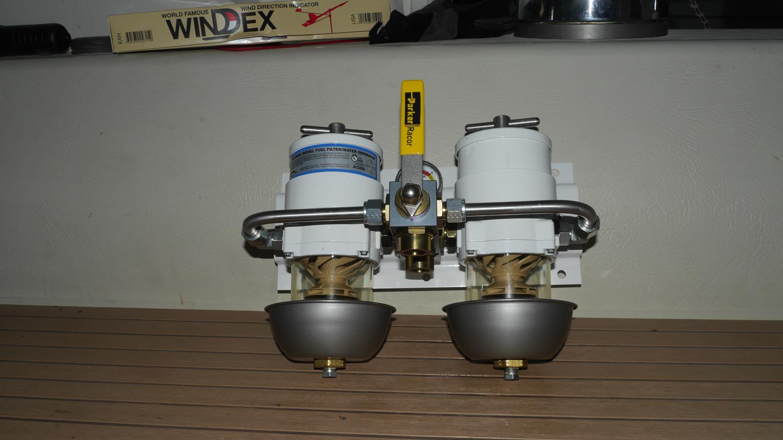 Nytt Racor filter blir det också, samt en dagtank på ca 150 liter, och ni ser kanske en Svensk Vindex i bakgrunden, går ju inte segla utan Vindex!!!