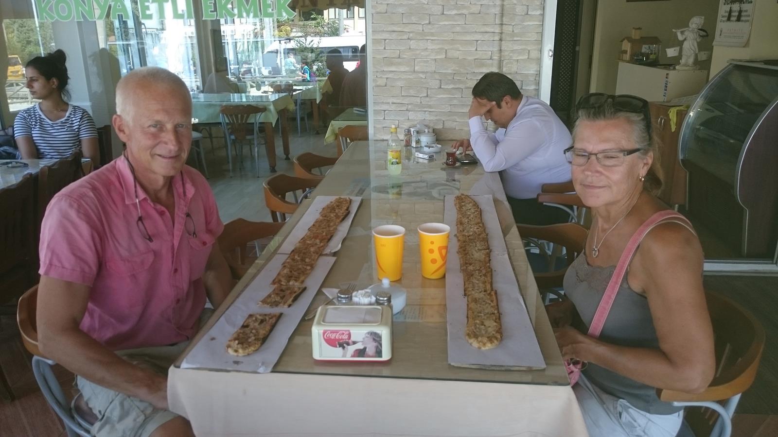Men för att jag skulle ställa upp och käka bönor så fick det bli ”lång” Turkisk Pizza (Pide tror jag att det heter) till lunch smakade jätte gott och billigt var det.