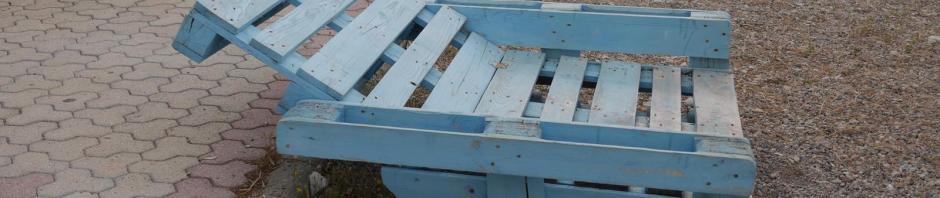 Var det inte högsta mode i Svenska inredningstidningar för ett tag sedan att inreda med lastpallar, bl.a. ibland ”maskrosorna” på Södermalm i Stockholm, ett enkelt och inte särskilt krävande sätt att visa att man tar miljöarbetet på allvar? Uppenbarligen var man trendgivare på Korfors den här solstolen har varit med ett tag.