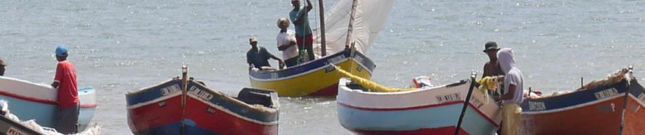 Fisket här verkar endast vara småskaligt, här extremt småskaligt, kvinnan har bara några få fiskar att sälja.