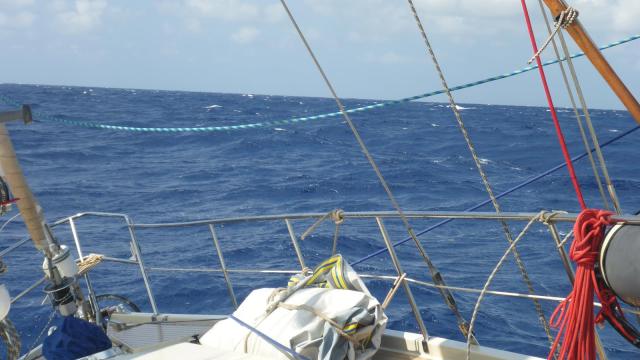 But we had nice times as well, not often you make over 12 kn, having good condition both wind and current with us, we enjoyed the voyage very much at that time, but it came to a quick halt when we suddenly got a squall we thought, but it was not a short squall, just new condition that lasted the whole day and night, don’t thrust the weather man.
