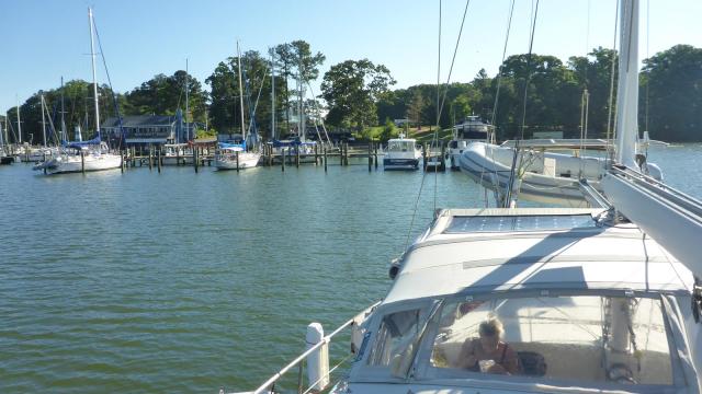 We had no time to stay long, we need to find a place to haul out Kerpa, and so we headed for Yankee Point Marina in Rappahannock River. One surprising thing is that mobile coverage is very poor in the rivers so we could no call the marina to discuss the details of when we could be hauled out, if we could stay on the boat when it was on the hard etc. We just had to assume it will work out well for us.