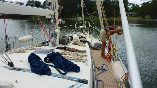 Had to empty one of the bow lockers, Kerstin asked me, do we need all those ropes? Well I said this not all ropes!!!!