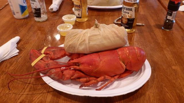 Well the first day back it was a lobster party the Main way. The owners of the yard are from Main, and once a year the fly in lobster and clams and serve it the Main way.