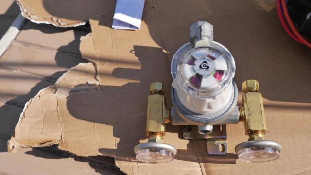 Interesting regulator for wall mount, one can have two bottles attached with two hoses to one regulator, at the regulator you can then switch over to the next bottle when the other is empty. But you need strong hoses as much higher pressure before the regulator than after.