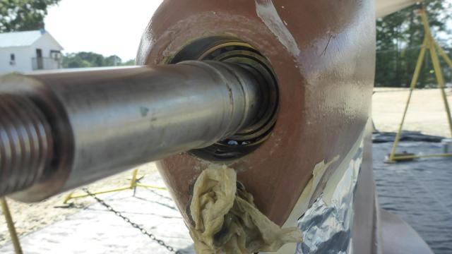The prop shaft busing together with three lip seals need to be replaced every two years or 800 hours, we were close to 1000 hours so definitely time to change.