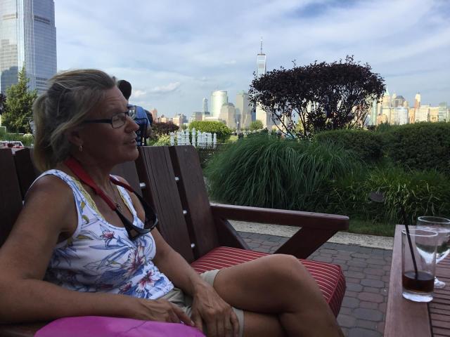 Kerstin need a break after the long walk towards the ferry on Liberty State Park