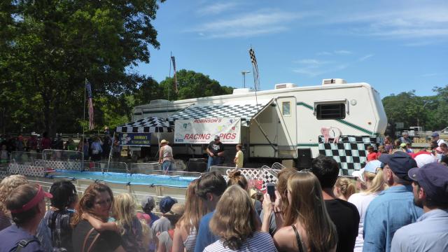Pig race, they run around the short court and swam a few meters the kids liked it.
