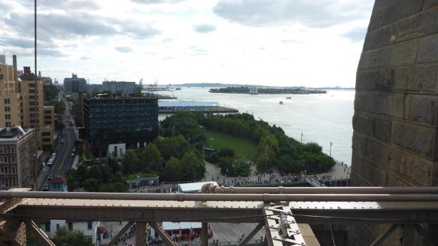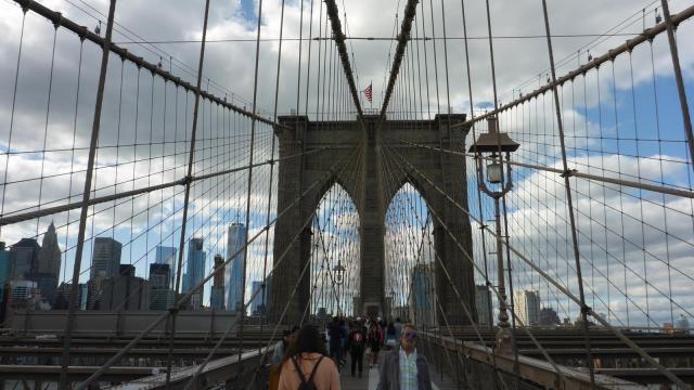 The Brooklyn Bridge is a real tourist attraction and sometimes it gets jammed with pedestrians and cyclist, but no hard feelings from locals who have to pass and just not walk the bridge for fun.