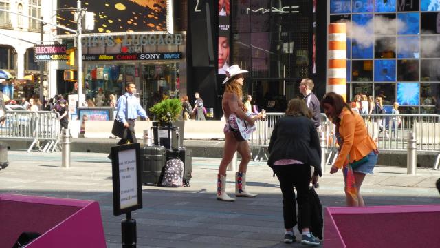All kinds of way to attract tourists for a dollar or two, thought being more or less nude would not be appropriate for the prudish Americans but it obviously was as long as you paint over the most vital parts of your body.
