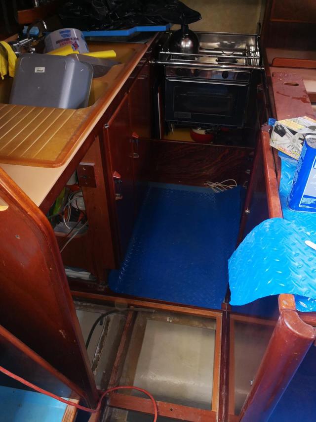 It is difficult to work when the yard also is working on Kerpa so I only work on the boat during the weekends, so I make a mess inside on top of the mess they have made.