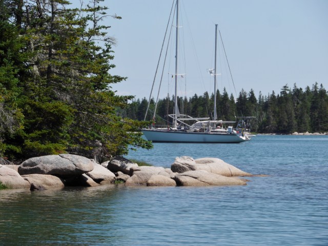 It reminds a lot of sailing on the Swedish east coast, with granite cliffs, the trees in Maine are spruce and in Sweden we see mainly pine trees. About the same temperature both in the air and in the water as in the archipelago of Stockholm, we took a short swim in the 17 C “cold” water.