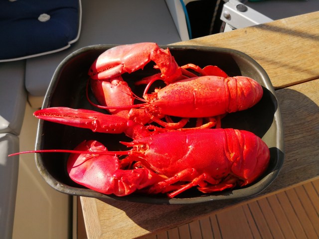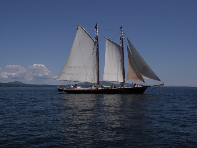 We left Provincetown late afternoon the 5 th of July for the 125 Nm trip to Booth Bay in Maine. The wind was from behind between 20-24 knots and the sea grew larger as we progressed towards Maine with good speed. The new autopilot need some adjustments it had difficulties in keeping a steady course in the not too large sea, strange as it kept very good course when we sailed up wind in choppy sea using the wind vane steering mode in the Delaware Bay. The manual does not give clear instructions, so we need to study it further (boring I’m no great friend of manuals, especially when the manual covering more than one model). Newer the less, we made good progress, but I did not get much sleep that night. When we got close to land some fishing markers showed up but not too many to be any great concern, but one had to keep rather sharp outlook. Well good outlook had the advantage that we saw our first shark out at sea, it was maybe 1,5 m long with the characteristic shark fin just above the surface, passing by lazily. We made landfall a grey and misty morning and had a continued good sail all the way in to the Booth Bay harbour. We quickly found a good spot to drop our anchor, it is always nice to get the hook down and have a relaxing cup of tea before clearing out the “extra” mess that we create during passage.