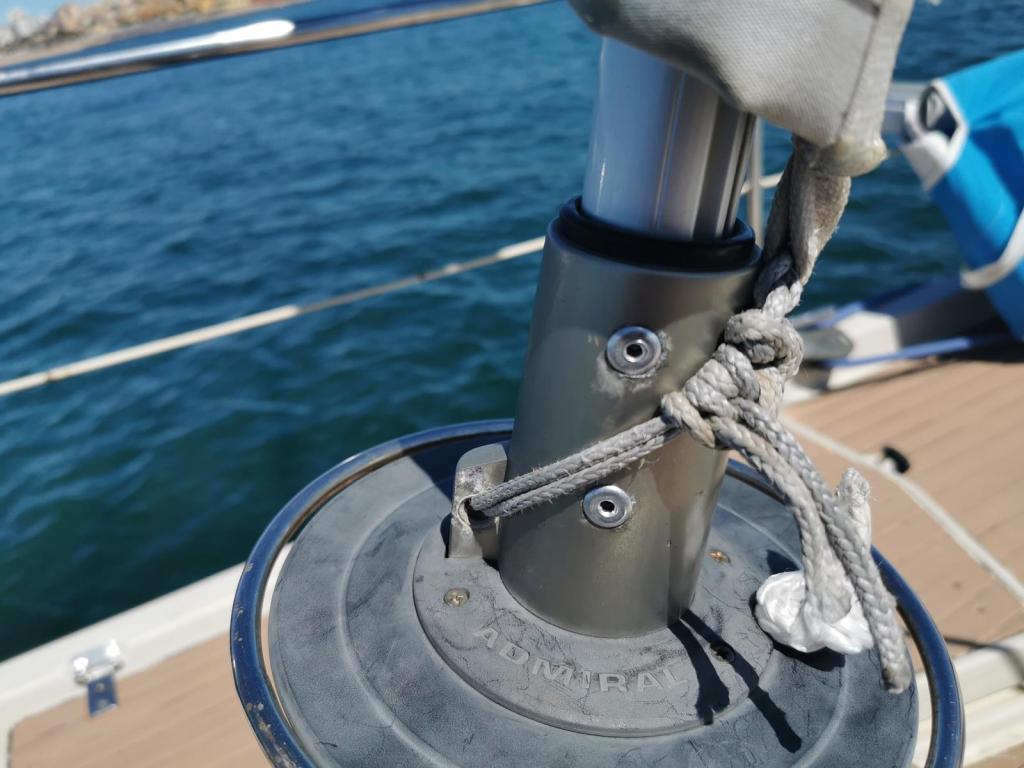 When hoisting the sails, we discovered that they had riveted the cutter foil 180 degree wrong on the furler drum!