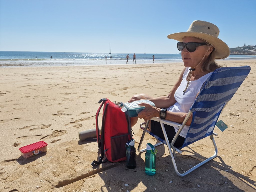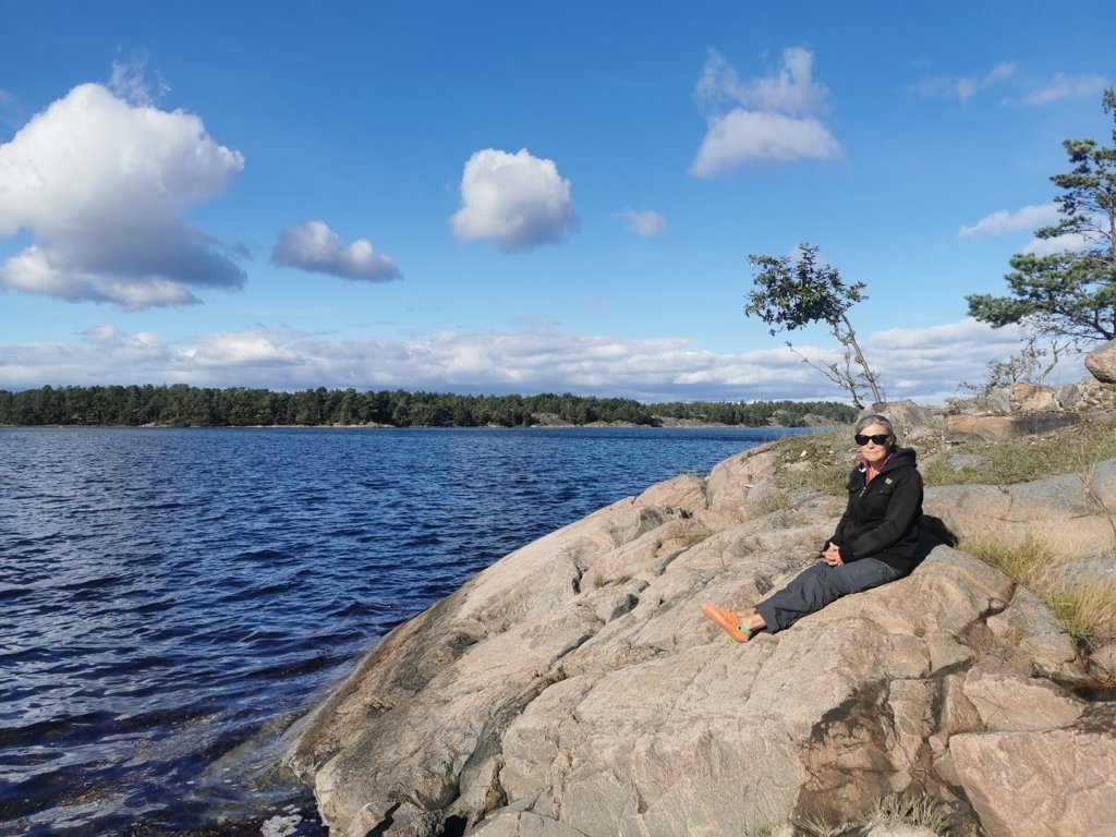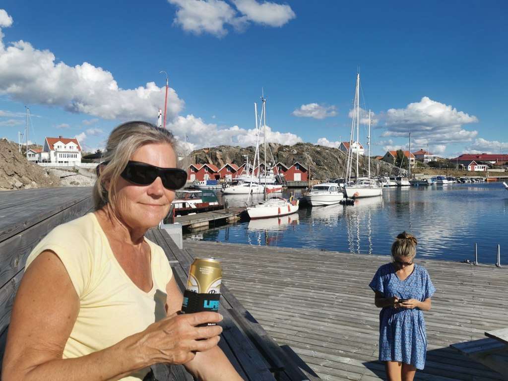 Kerstin enjoying a beer in Skärhamn, a place were we lived for 8 years, and our kids went to school