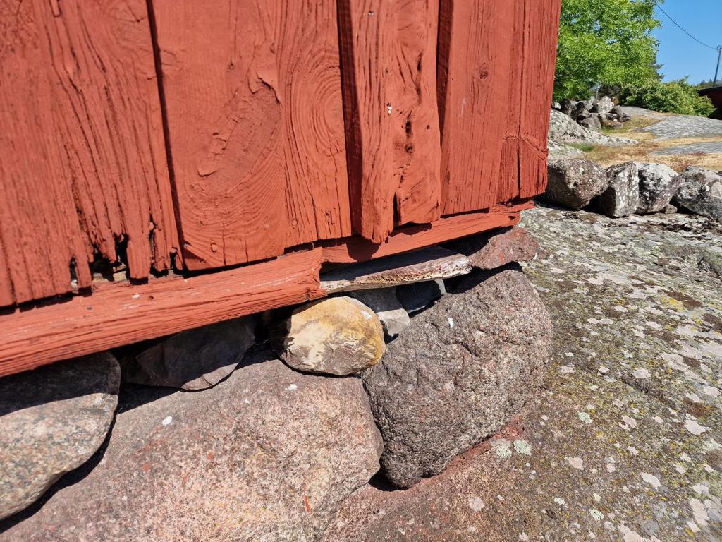 Old type of foundation simple but durable, timber probably 150 years old and still strong.