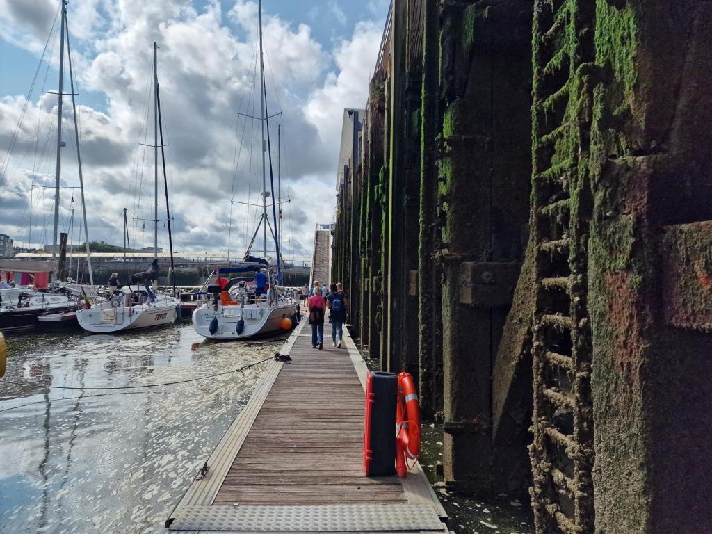 I hope these two pictures from the Marina in Boulogne Sur Mer illustrate the difference in sea level due to the tide.