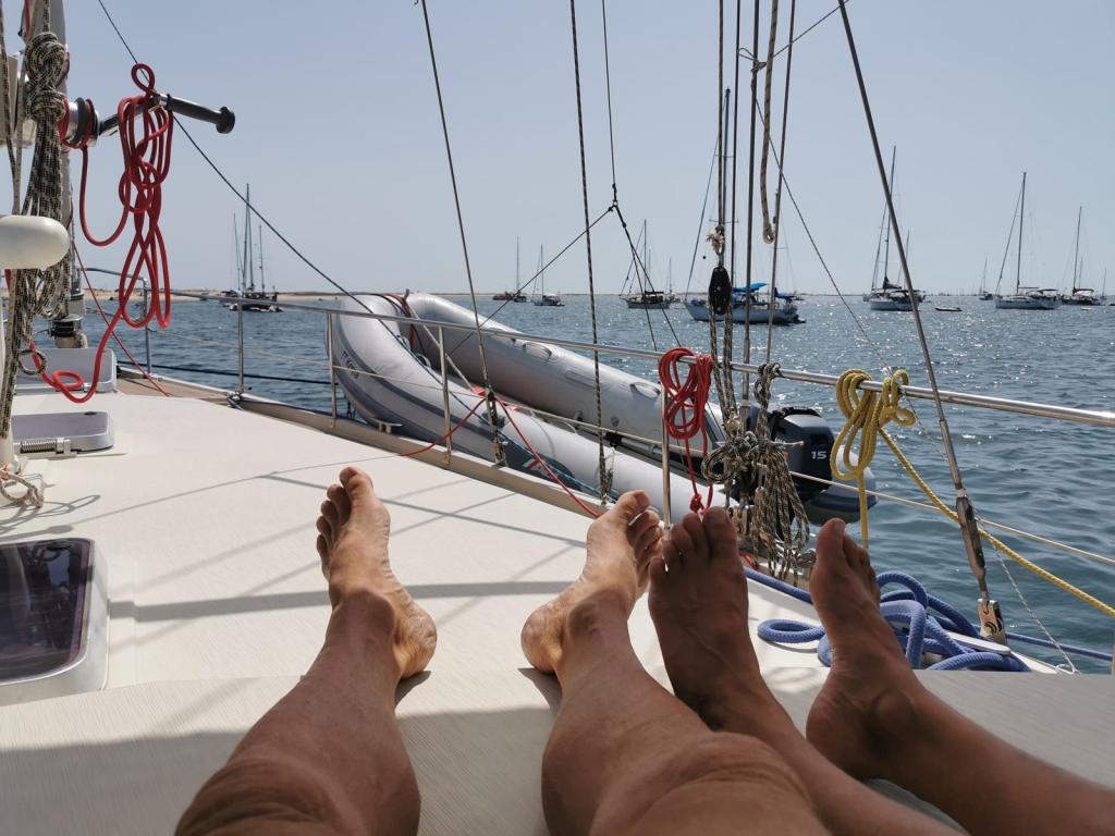 After that we went back to Ferragudo anchorage enjoying hamburgers trying our new sails especially our new Code D