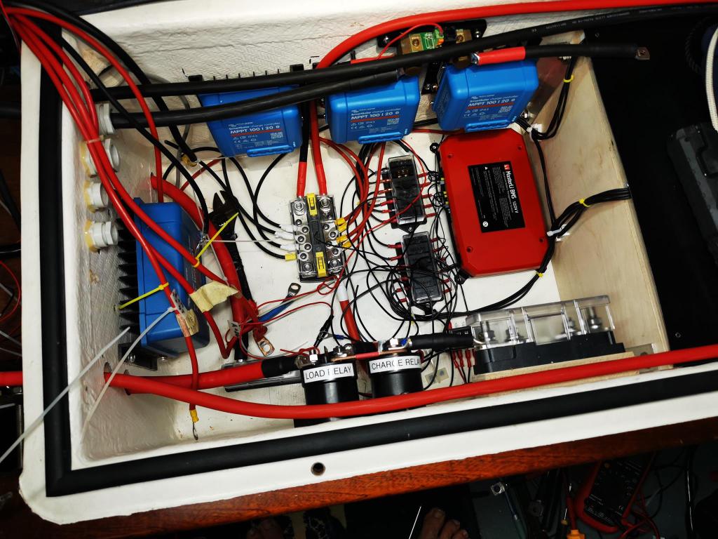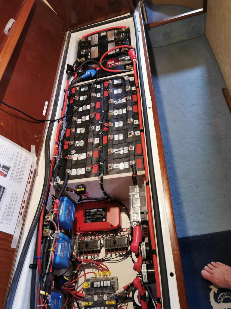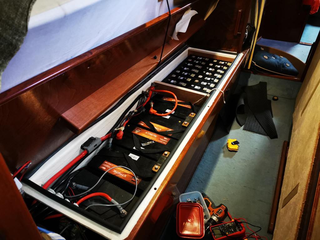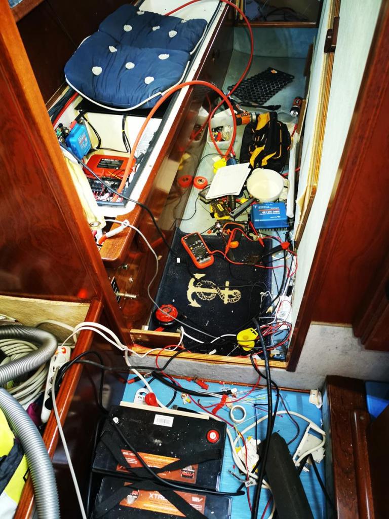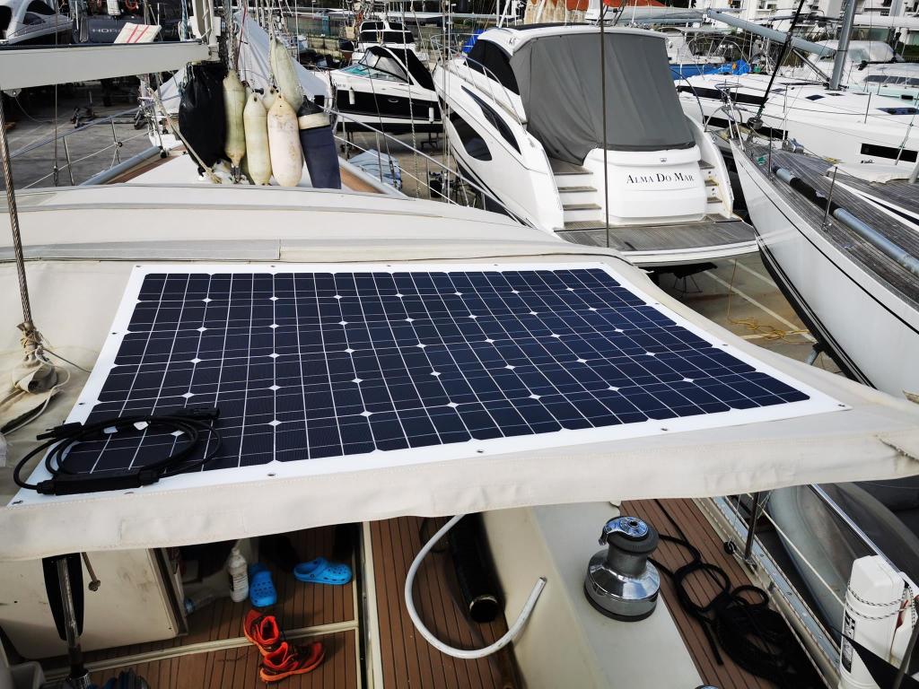 We have bought new solar panels 2x400w to replace the 3×150 watt on the arc, so 800w on almost the same area as 450w, will be a great improvement. Waiting for two 150 w semiflexible tailor-made 36 v panels from China to put on the bimini, that with the current 2×180 watt on the rail will give total 1,46 Kw of Solar. I have 16×270 Ah LIFePO4 cells soon to arrive from China, but that will be a blog on its own