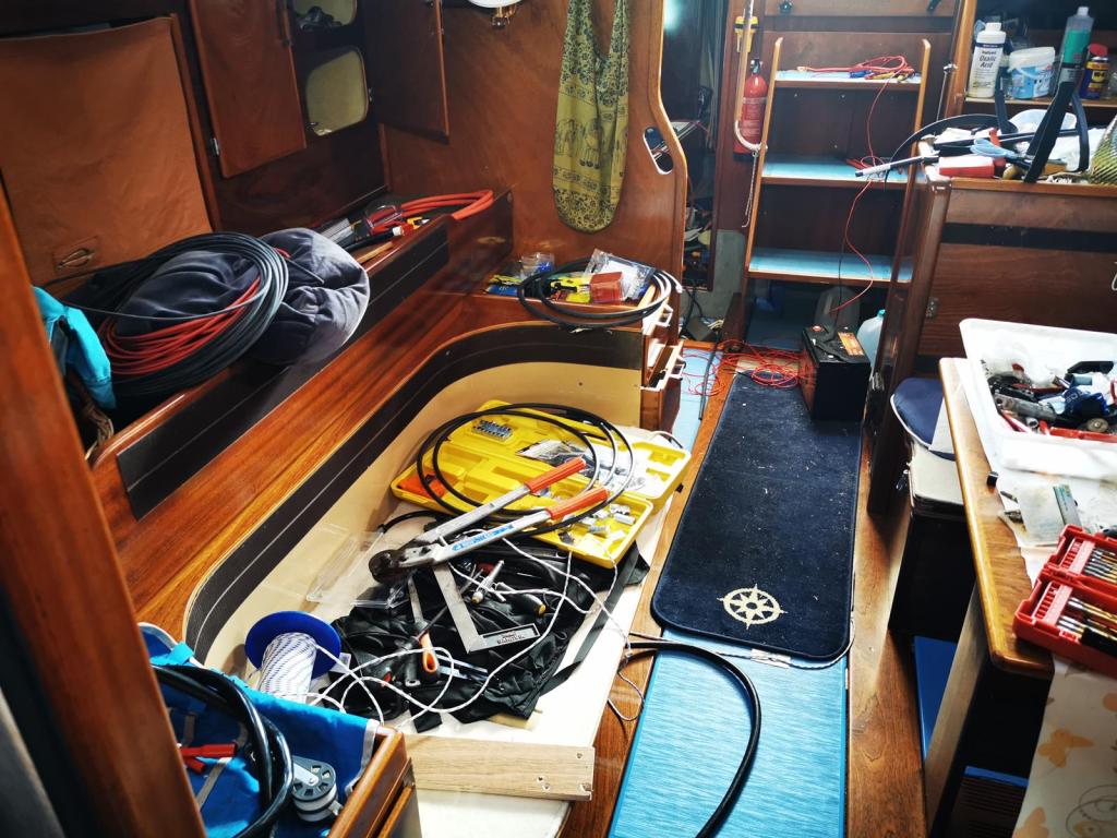 Masts back again, and now I needed to connect all the cables again, it is much faster to disconnect than connect that is for sure. I have a few YouYube movies about the replacement of the standing rigg.
