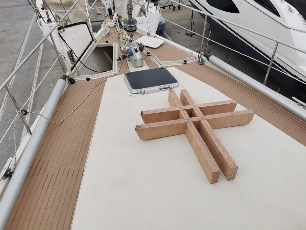 When hoisting the sails, we discovered that they had riveted the cutter foil 180 degree wrong on the furler drum!
