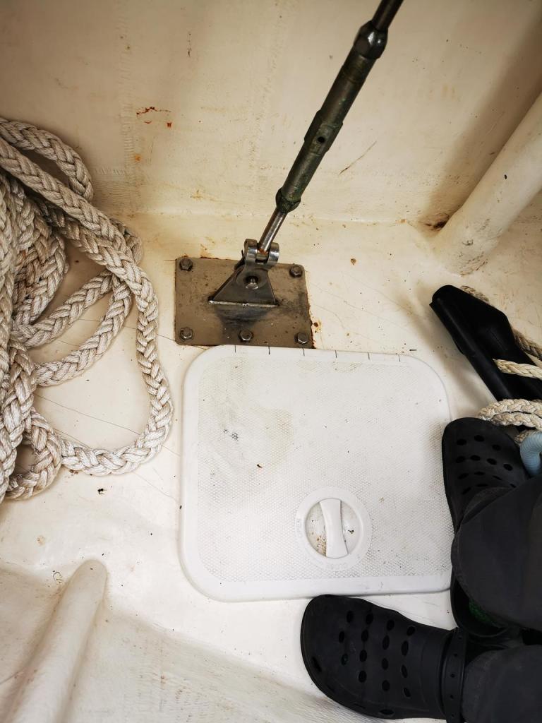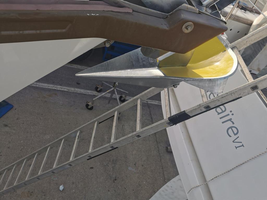 Attachment point for the tack, but the grove is on the other side of the foil, shit what to do? I did not felt for drilling out the rivets, turn it and put in new rivets, I started to get tiered on boat jobs and we did want to leave Algarve rather sooner than later.