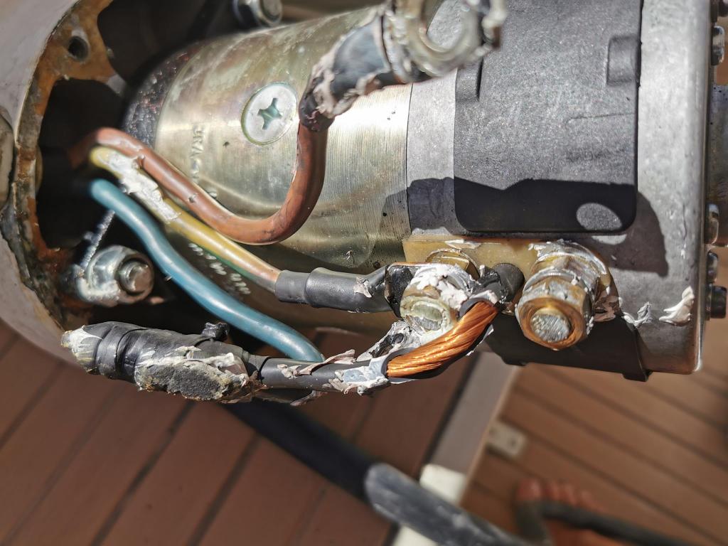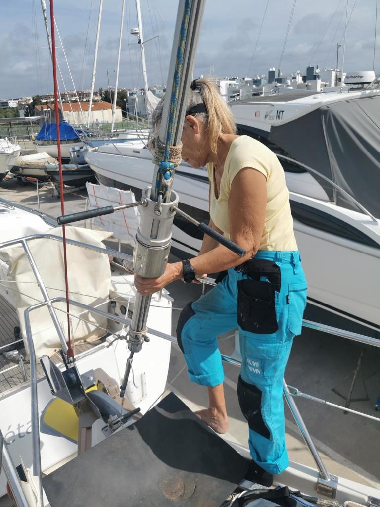 The electric motor has a poor cable hope I can fix it with a heavy-duty heat shrink tube, else I have to take it to a professional workshop. I have taken the head furling gear to a workshop as it is a very expensive peace of equipment and I do not want to risk damage the aluminium casing. I was recommended a workshop in Portimao who serviced the same type of furler on Lady Annila another Amel SM, which we know.