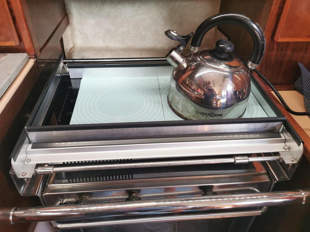 The induction hob with the dedicated 220 v socket. Gives redundancy and the MultiPlus inverter can be used at the same time for other purposes.